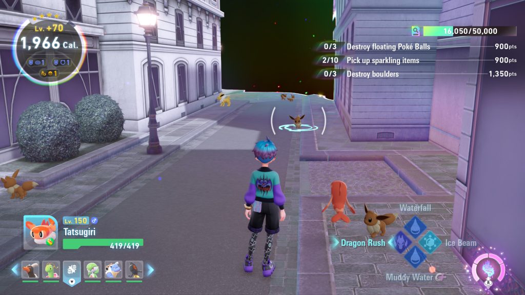 For å komme deg videre i historien, må du gjøre oppdrag i Hyperspace. Da kommer vi til DLC-ens største problem: dette blir etter en stund repeterende og «grindy». Selv om oppdragene er tilfeldig for hver portal, er det en begrenset mengde forskjellige som finnes. Etter å ha spilt en stund har du på en måte sett og gjort alt, noe som kan gjøre det slitsomt å måtte samle enda flere poeng. Rogue Mega Evolution-kamper blir et velkomment avbrekk etter mye grinding.
