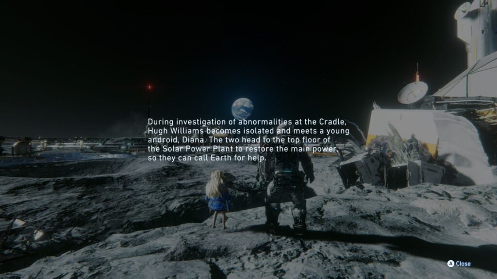 Hvis man ikke har noe imot å få større mengder av fortellingen servert før man begir seg ut i spillet, kan man plukke opp en god del fra markedsføringsmaterialet til Capcom. Man spiller noe som kan minne om en astronaut ved navn Hugh Williams, på noe som tilsynelatende ser ut som månen.