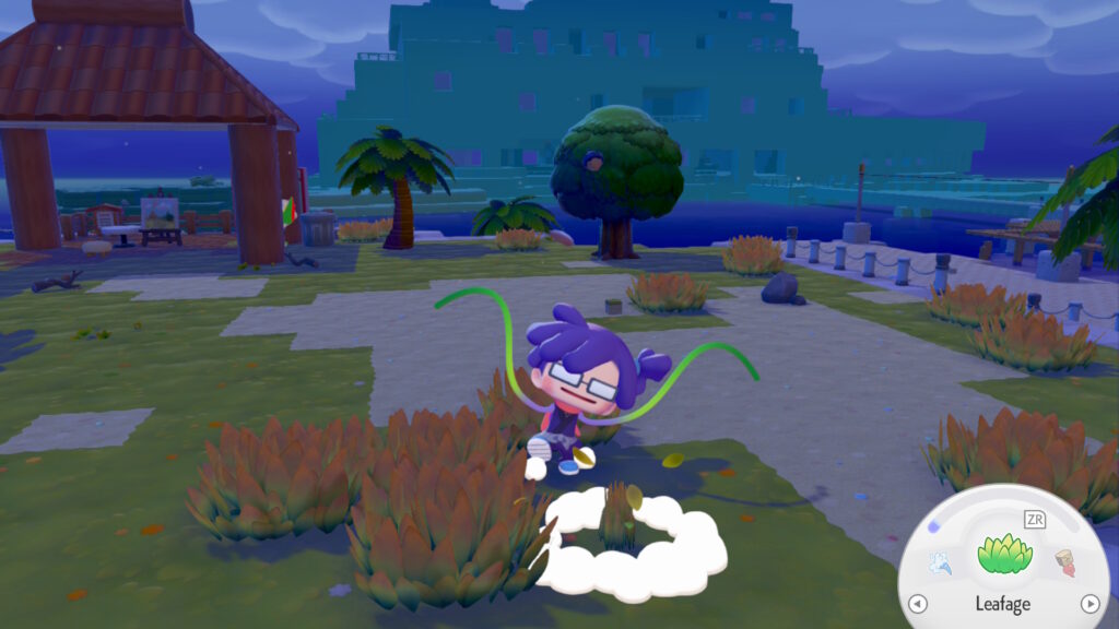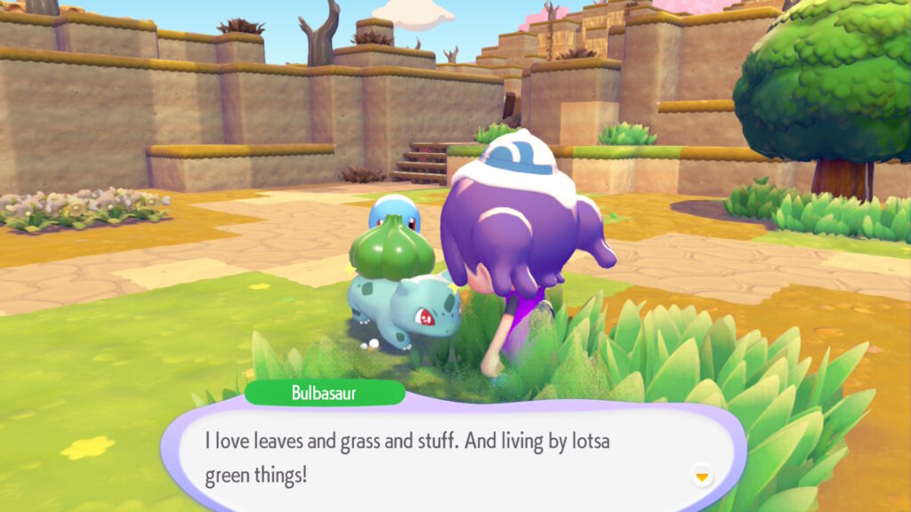 Ikke lenge etter møter du på Squirtle. Hen lærer deg å vanne bakken for å gjenopplive gress, trær og blomster. Like etter, treffer du på Bulbasaur, som viser deg hvordan du kan få gresset til å gro høyt. I tillegg kan du bruke blant annet kvister, steiner og blader du plukker opp for å bygge møbler og annet nyttig. Alt dette kommer godt med når du skal gjøre omgivelsene til et hyggelig sted for Pokémon å bo.